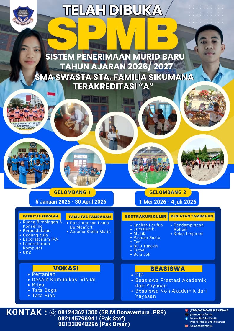 Pusat informasi resmi pendaftaran, persyaratan, dan alur seleksi siswa baru SMA Swasta Sta. Familia Sikumana Kupang.
